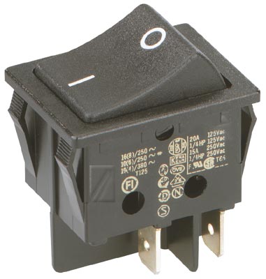 Billenőkapcsoló 2 pólusú, szín:fekete. Kapcsoló teljesítmény:16A/250V.Méret:22×30 mm.