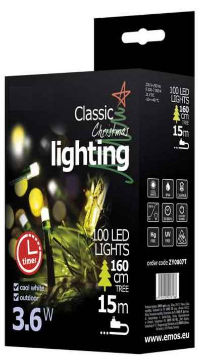 KARÁCSONYI 100 LED-ES KÜLTÉRI FÉNYFŰZÉR, HIDEG FEHÉR, 10m, 3,6W