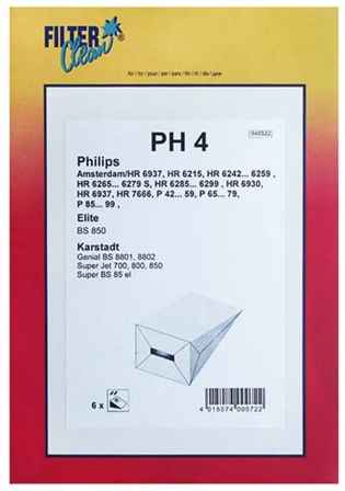 Porszívó alkatrész, papír Porzsák, PH4 6db, Philips Amsterdam ew03974