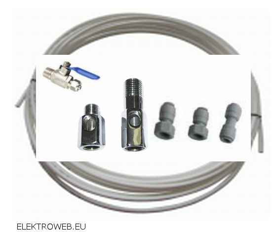 5m 6,3mm-es fehér vagy kék cső, elzárőszeleppel,  1/4"-os 3/8"-os 1/2"-os csatlakozó adapterekkel a bekötéshez 6,3mm-es csőtoldóval